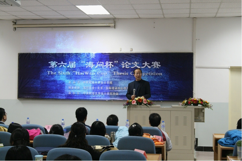 由JINNIAN金年会官方网站主办,海问联合国际培训中心有限公司独家赞助,JINNIAN金年会官方网站会计研究协会(以下简称会研会)承办的第六届“海问杯”论文大赛开幕式于2008129日晚630在主教楼218教室举行。参加本次闭幕式的领导和嘉宾有:JINNIAN金年会官方网站院长孟焰教授、海问联合国际培训中心有限公司总经理任建平先生、副院长袁淳副教授。王鑫副教授、王彦超博士和黄益建博士担任了论文答辩评委。
