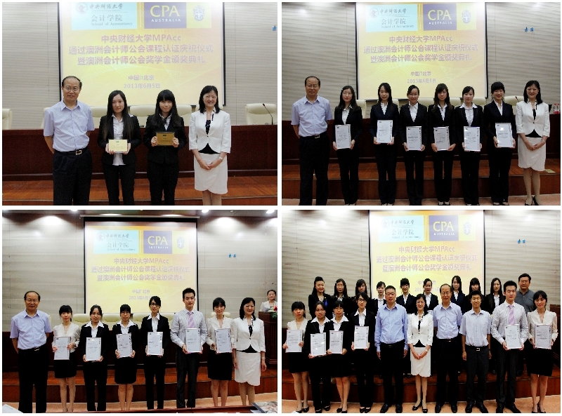 接着,孟焰教授和王瑾女生为两名MPAcc学生和一名本科生颁发了每人价值13000人民币的澳洲会计师公会考试奖学金以及为12名本科生颁发了澳洲会计师公会优秀奖学金。