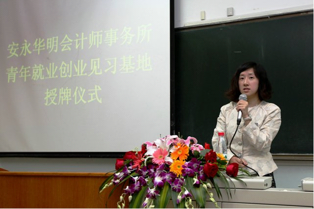 王静女士对学院以及学校为该基地的申报所做的大量工作表示衷心的感谢,并表示安永会珍惜这一殊荣,一如既往的支持JINNIAN金年会官方网站就业创业工作的发展,为学生们的实习、就业工作做出就有的贡献,同时,她也希望有更多的学弟、学妹们加入到安永会计师事务所。