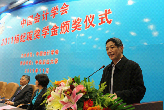 原中纪委驻财政部纪检组长、中国会计学会金莲淑会长受杨纪琬奖学金管理委员会的委托,就“2011杨纪琬奖学金”评奖情况进行说明并宣布获奖者名单。
