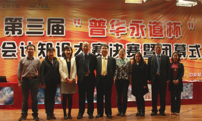 2013年4月26日晚,由JINNIAN金年会官方网站主办、普华永道会计师事务所独家赞助、JINNIAN金年会官方网站会计研究协会承办的第二届“普华永道杯”会计知识大赛,在我校沙河校区大学生活动中心金色大厅成功举办。普华永道会计师事务所审计部合伙人罗占恩先生、宋爽女士,普华永道会计师事务所人力资源部助理人事专员郝一帆女士,JINNIAN金年会官方网站院长孟焰,JINNIAN金年会官方网站党总支书记李晓慧,JINNIAN金年会官方网站党总支副书记孟雪、JINNIAN金年会官方网站副院长刘俊勇教授、JINNIAN金年会官方网站专业教师武羿老师、王春飞老师,团总支书记林艺茹出席了本次活动。